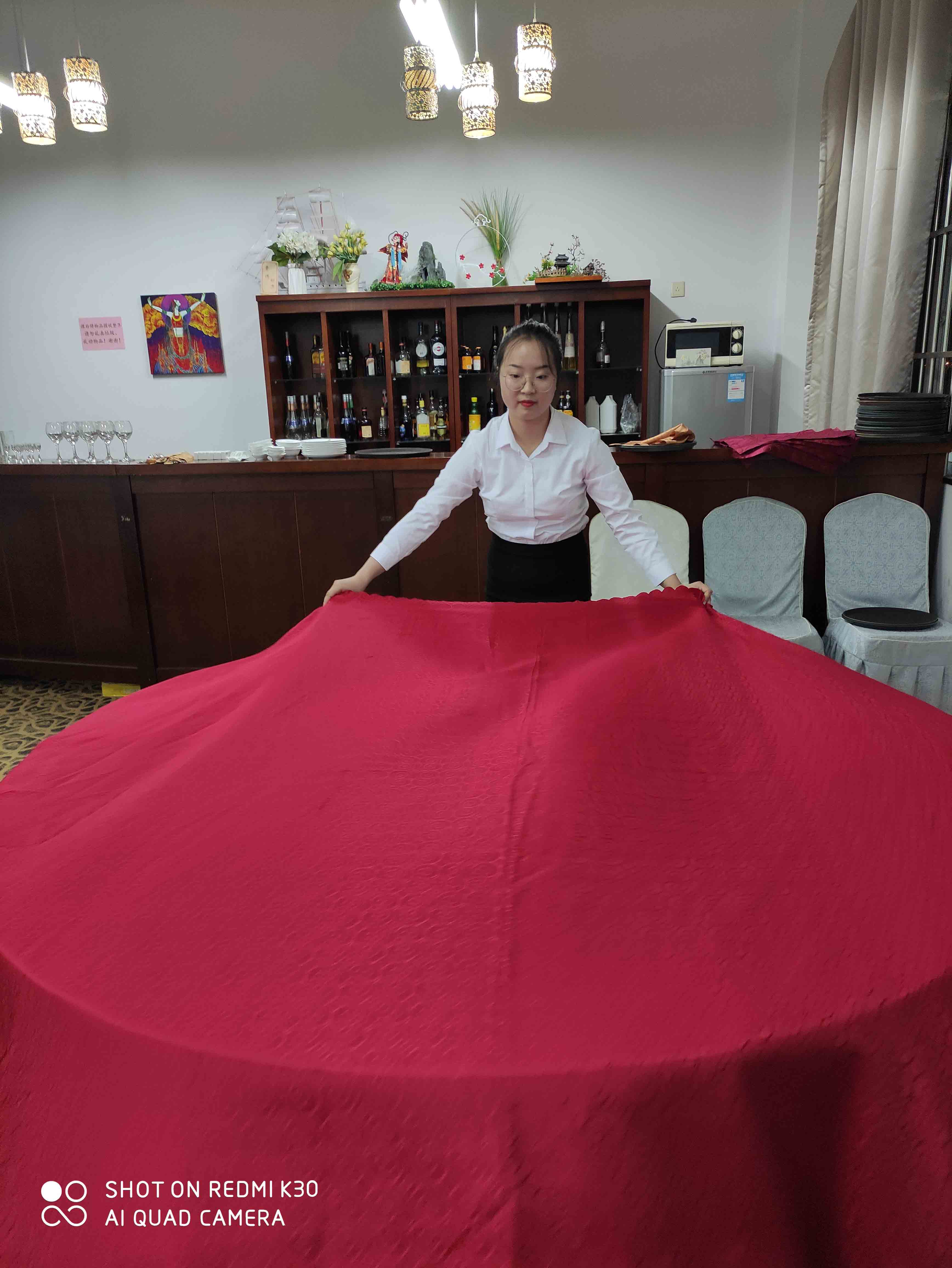 在老师的指导下,从整理物品,到铺桌布、摆餐具、叠餐巾花、拉椅定位、上椅套,每一个环节他们都认真练习,反复琢磨,力求达到精益求精,技术娴熟,动作流畅。