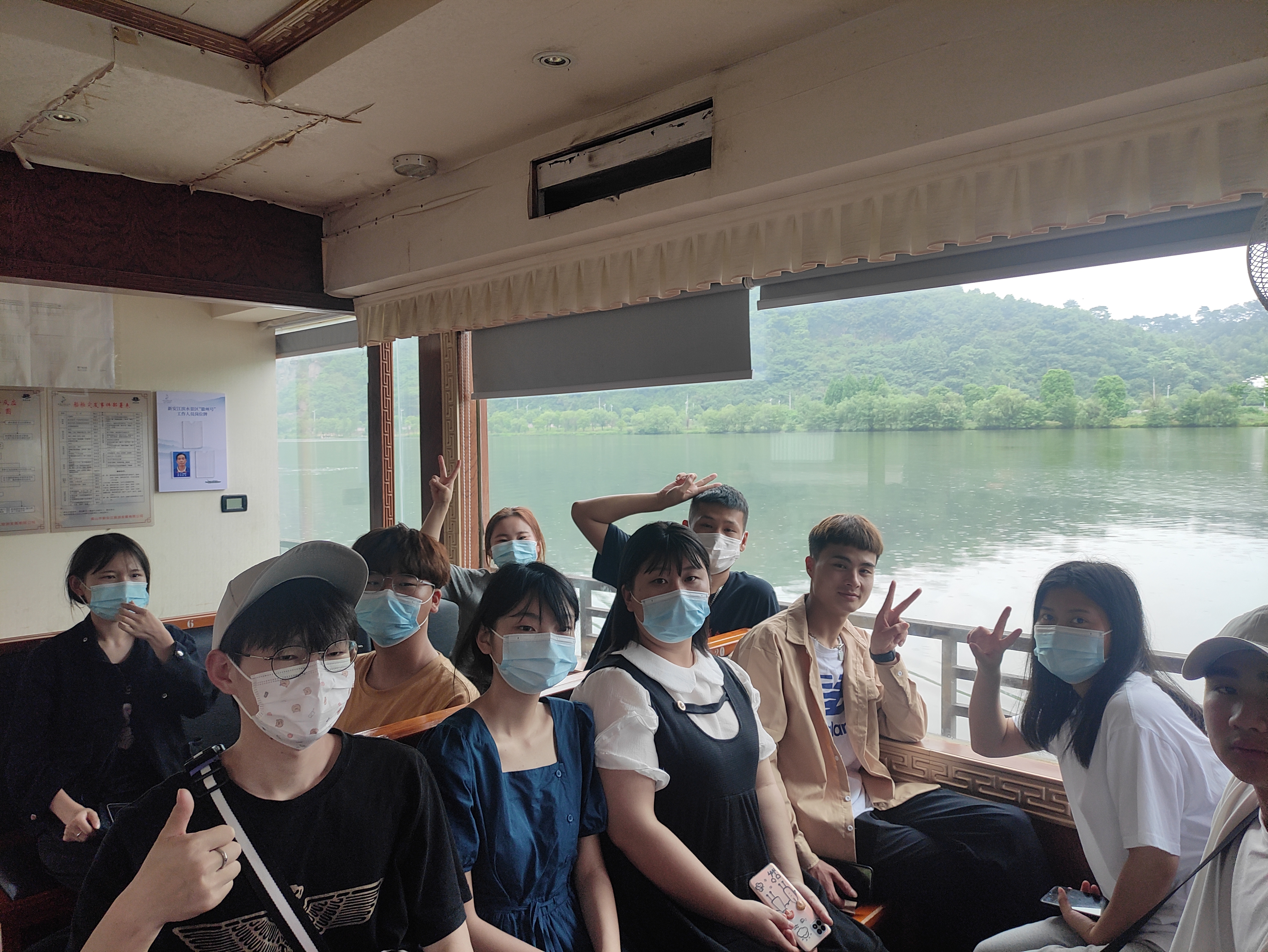 在新安江上,同学们乘坐邮轮,荡漾在清澈的江面上,领略新安江文化,欣赏城市美景,体验别样风情。虽然细雨霏霏,但愉悦的心情,带来了阵阵欢声笑语。