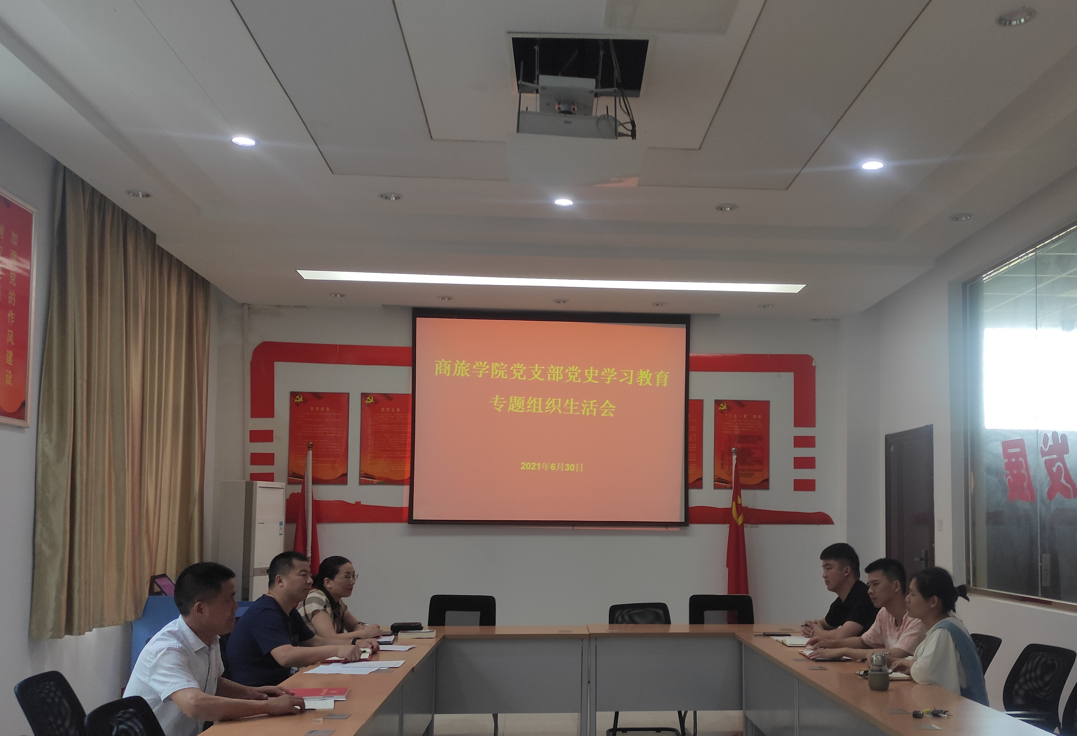 630日上午,商旅学院党支部在行政楼一楼党员活动室召开党史学习教育专题组织生活会。会议由冯登海同志主持,商旅学院党支部全体在校党员出席会议。