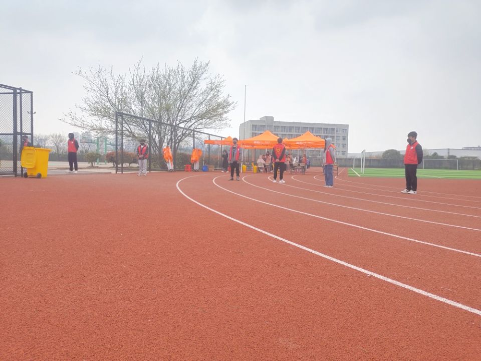 在疫情防控演练现场。积极分子们主动协助工作人员现场维持秩序。他们按照疫情防控规定,提醒同学们戴好口罩,保持一米距离,认真做好防空演练。