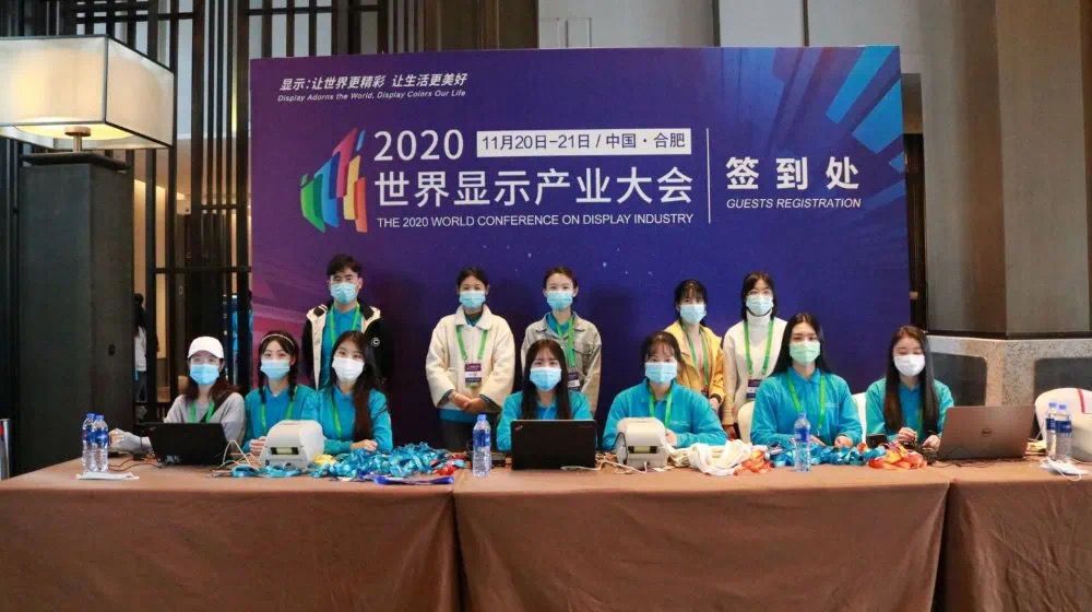 2020世界显示产业大会于11月20日至21日在合肥融创嘉华酒店举行。商旅学院凡思想等10名学生干部参加了大会的志愿服务活动。 根据大会安排,志愿者们主要承担安检、签到、维持秩序、搬运行李等工