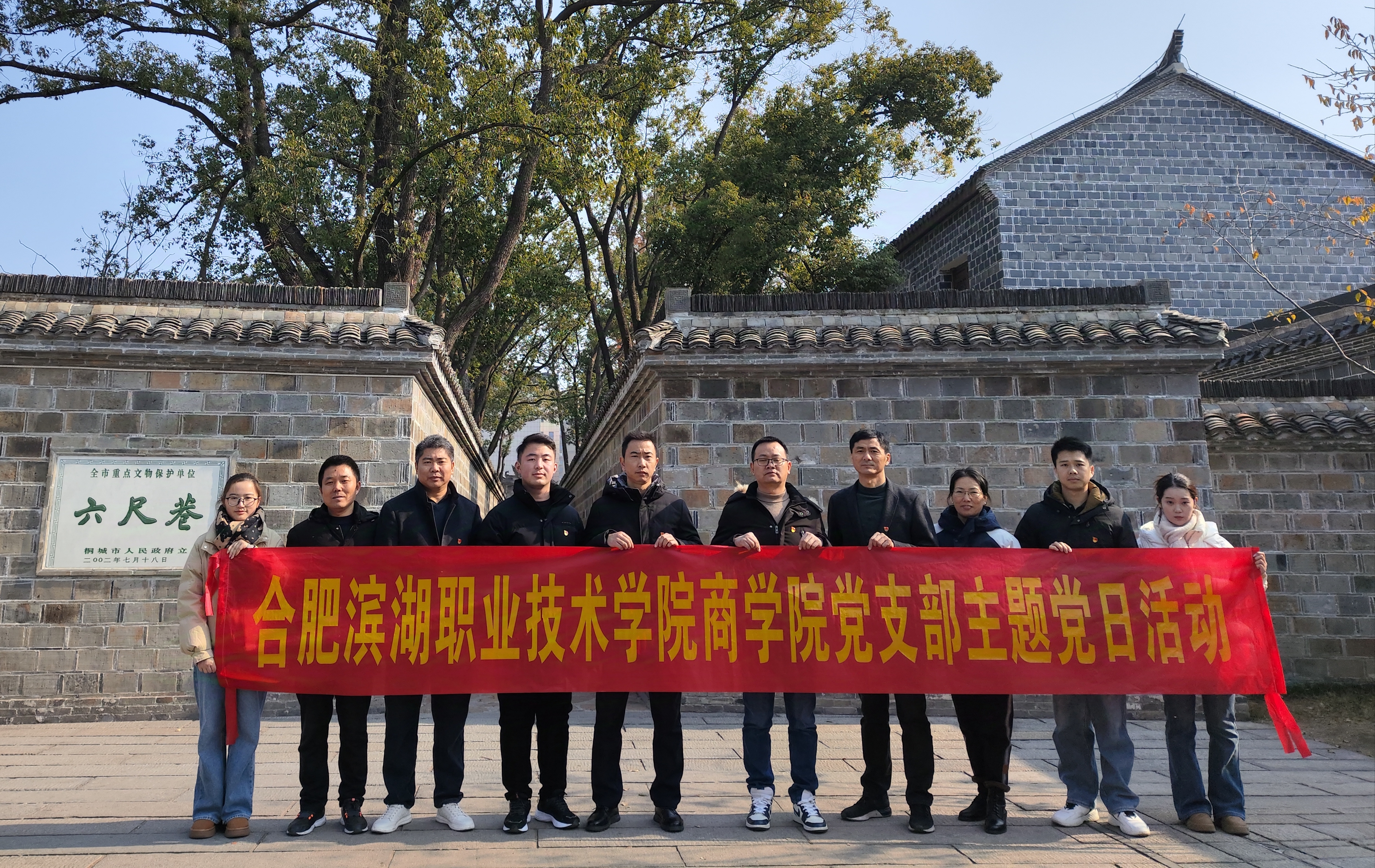 为深入学习贯彻习近平总书记考察安徽重要讲话精神,传承弘扬中华优秀传统文化,ok138cn太阳集团党支部于2024年12月21日赴桐城市开展了以“传承弘扬中华优秀传统文化,锤炼提高党员党性修养”为主题的主题党日活动。 党员教师们首先来到六尺巷,行走在六尺宽的巷子里,张、吴两家以谦