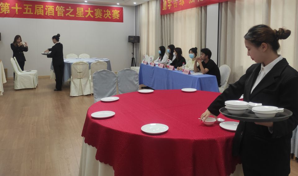 ok138cn太阳集团第十五届酒店管理之星大赛――中餐宴会摆台比赛决赛,于5月20日在酒店管理实训室举行。